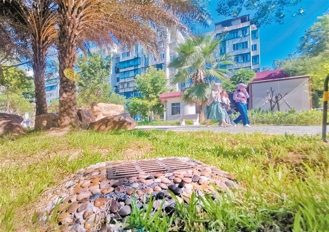 作為我市老城區(qū),金平區(qū)因地制宜引入海綿城市理念,實現(xiàn)老舊小區(qū)雨水控制能力的提升,以及小區(qū)環(huán)境的整體改善。桃園住宅小區(qū)使用至今已近30年,設(shè)施老化,綠地率偏低,小區(qū)內(nèi)基本是雨污合流,管道破損嚴(yán)重。在老舊小區(qū)改造中,項目重建了小區(qū)排水管網(wǎng)系統(tǒng),實現(xiàn)雨污分流,同時結(jié)合海綿城市建設(shè)理念,將建筑樓棟間硬質(zhì)鋪裝改為透水鋪裝,地上停車位改為植草磚生態(tài)停車位,在小區(qū)中心小游園處設(shè)置雨水花園,降低綠地標(biāo)高,拆除原路側(cè)石,將附近道路徑流水匯入雨水花園。