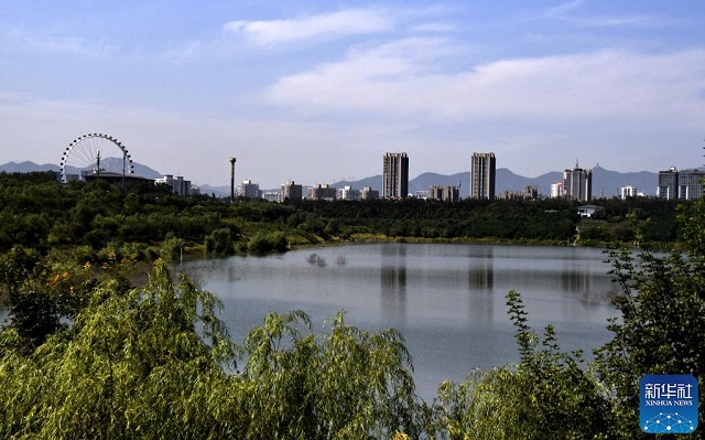 這是利用阜石路廢棄的大型砂石坑建設(shè)的西郊雨洪調(diào)蓄工程,蓄水量可達(dá)680萬立方米(9月8日攝)。