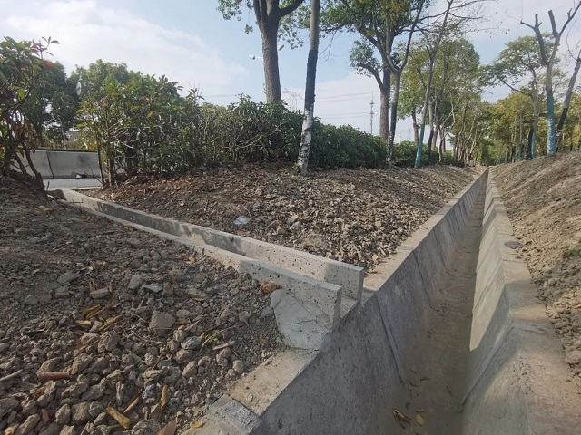 在趙重公路新豐支路至滬常高速段,由于道路兩側地塊標高較高,排水溝淤堵、填埋導致雨天經常出現內澇情況。針對該路段積水原因,改造工程重點解決路面積水匯流及排水出路問題,在非機動車道外側新建流水槽,將非機動車道外側積水引流至道路外側,翻挖新建邊溝、雨水連通管和雨水口,實現及時排水?!爸暗缆吩O計是自排水的,依靠道路兩側的土溝收集雨水,隨著這幾年道路周邊地塊開發,土溝已經不滿足排水要求,所以按照五年一遇的暴雨降水量,在道路兩側增設混凝土明溝收集道路雨水,現在施工已經完成,觀察下來,道路沒有發生過積水問題?!鼻嗥謪^道路運輸管理事務中心工作人員徐華介紹。