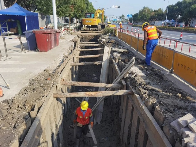在外青松公路千新公路至油墩港路段,積水點改造項目進入到排水管道鋪設和雨水井施工的收尾工作。據該項目負責人介紹,以往每逢暴雨期間,外青松公路、千新公路交叉口積水嚴重,對周邊人員正常出行造成很大的影響。為徹底解決積水問題,在外青松公路道路新建雙排管口直徑為1000毫米雨水管道,自千新公路西側起排,收集道路路面及兩側地塊雨水后排入油墩港,減輕片區的排水壓力,解決困擾周邊居民已久的內澇問題?!爸暗呐潘到y年代久,管道積淤情況嚴重,而且這邊道路地勢比較低,非常容易積水。這次改造施工主要以大口徑的管道的排設為主,在非機動車道上增設進水井,在雨量大的時候可以及時水排走,達到解決積水問題的效果?!狈e水點改造項目經理張源說。