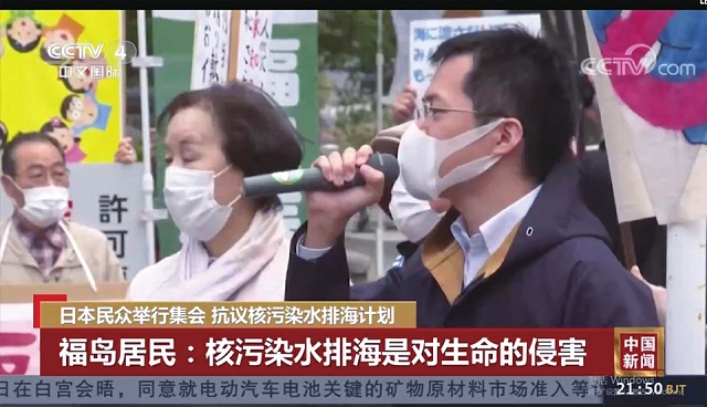 抗議集會上,“311甲狀腺癌兒童支援網(wǎng)絡(luò)”成員岡田俊子介紹了《核污染水排放入海的爭論點——氚的危險性》一書。該書作者之一渡邊悅司是福島核泄漏事故的受害者,去年2月因癌癥去世,堅決反對核污染水排放入海是她的遺愿。書中介紹了核污染水對人體的影響,并指出福島核事故后,當(dāng)?shù)刂辽僖延?00多名兒童確診甲狀腺癌。