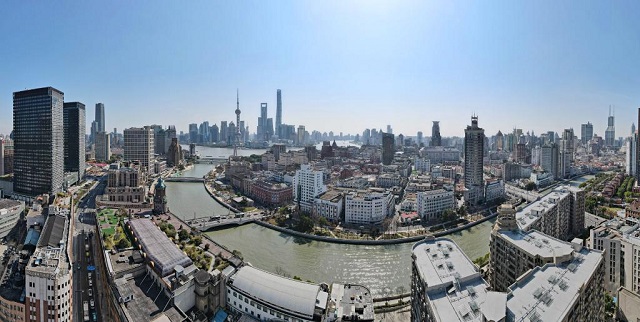 蘇州河是上海的母親河。從空中俯瞰,其宛如一匹綠色的錦緞,九曲十八彎地穿過(guò)城市心臟地帶,匯入黃浦江,東流入大海。
