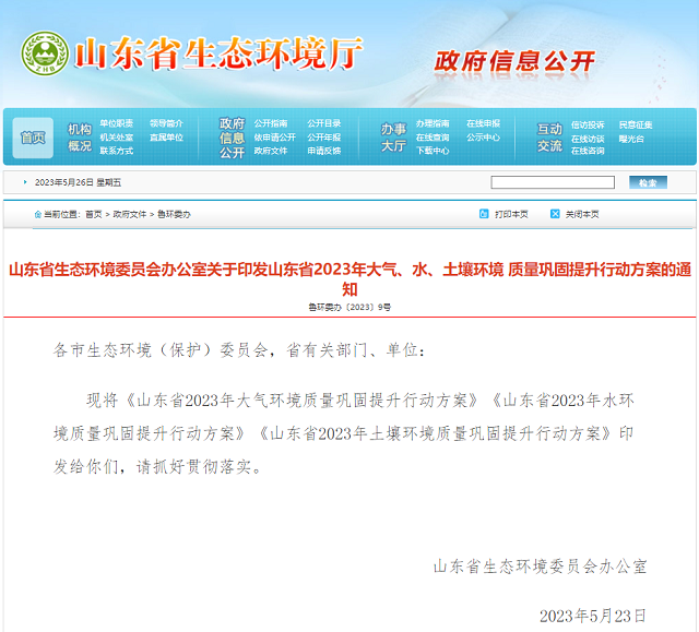 山東省2023年水環(huán)境質(zhì)量鞏固提升行動(dòng)方案