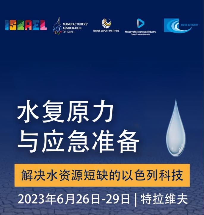 中國城鎮供水排水協會受以色列經濟與產業部及駐華使館的邀請于2023年6月26-29日派員參加了在以色列第二大城市特拉維夫舉行的“2023以色列水復原力與應急準備大會”( the Water resilience & Emergency preparedness event 2023 in Tel Aviv)。本次活動是以色列面向國際社會集中展示其解決水資源短缺以及應對突發事件保證正常供水方面的技術的一次活動?!八畯驮Α笔侵杆谑褂弥笸ㄟ^一系列水處理技術使其恢復到原狀態的能力,在這個理念指導下,污水及海水都可以通過技術成為水資源,這也是以色列在荒漠國土上生存發展的技術保障。