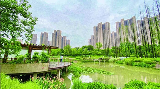 乍一看只是一處普通的公園,卻處處隱藏著小“海綿”:兼具生態(tài)蓄水和凈水功能的跌水梯田和濕地水塘、滲水效率極強(qiáng)的透水鋪裝、可以過(guò)濾雨水的植草溝、能涵養(yǎng)水源的雨水花園……這就是南京市棲霞區(qū)寅春路海綿公園。