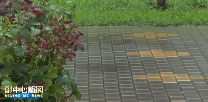 通州區海綿辦工作人員康振:“咱們腳底下透水磚下面,有透水的混凝土的墊層,下邊有碎石層,再下邊有細沙層,當這雨水降落到廣場上的時候,首先會通過透水磚,一層一層的,就剛才說的這堆透水結構,一層一層向下去滲透 給市政雨水的排水管線,還有河道,短時間之內減少行洪壓力。”