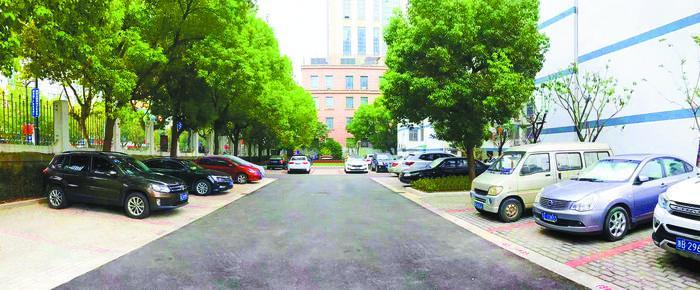 道路工程統一進行“白改黑”改造,結合雨落水管斷接,同步翻建混凝土建筑散水坡,避免雨水入滲底層自行車庫;結合海綿措施,將破損停車場改造為內嵌式透水植草停車場,結構層采用鋼渣透水混凝土,面層采用??蛑膊荽u,雨水直接下滲,在保證透水的基礎上又增添了綠意。