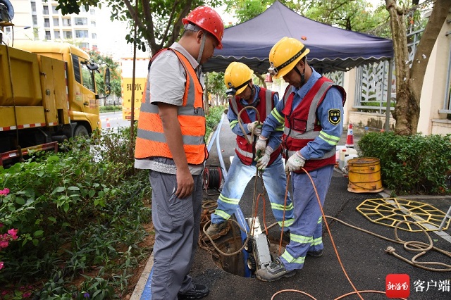 于是,清淤疏浚、鋪設管道,三亞中心城區排水管網提質增效項目就這么如火如荼地展開了。“為了提高建設效率,我們還求助了‘機器人’?!崩杞浄侗硎荆皺C器人”正是工業管道內窺攝像機器人檢測設備。在項目現場,只需將一個帶有360°旋轉探頭的機器人緩緩放進窨井,地面上的電子屏幕就會傳回機器人在黑漆漆的管道內拍攝到的清晰畫面。