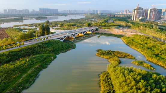 2015年灃西新城正式成為全國(guó)首批海綿城市建設(shè)試點(diǎn)。在海綿城市建設(shè)中,灃西新城提出了“建筑地塊確保雨水應(yīng)收盡收、市政道路加強(qiáng)集水功能、景觀綠地優(yōu)化豎向設(shè)計(jì)、中央雨洪系統(tǒng)形成調(diào)蓄樞紐、河道修復(fù)增加天然水域”等七大試點(diǎn)做法,對(duì)雨水進(jìn)行“滲、滯、蓄、凈、用、排”多種方式處理,已初步構(gòu)建了建筑小區(qū)、城市道路、公園綠地、河流濕地四個(gè)層級(jí)的海綿城市建設(shè)體系,逐步修復(fù)了轄區(qū)內(nèi)的河湖水系。