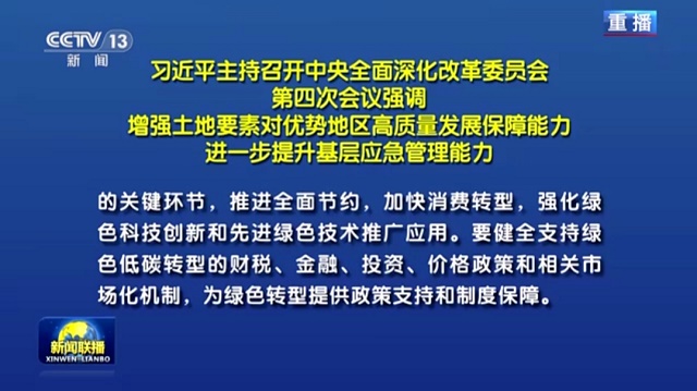 2月19日下午,中共中央總書(shū)記、國(guó)家主席、中央軍委主席、中央全面深化改革委員會(huì)主任習(xí)近平主持召開(kāi)中央全面深化改革委員會(huì)第四次會(huì)議,審議通過(guò)了《關(guān)于促進(jìn)經(jīng)濟(jì)社會(huì)發(fā)展全面綠色轉(zhuǎn)型的意見(jiàn)》等重要文件。