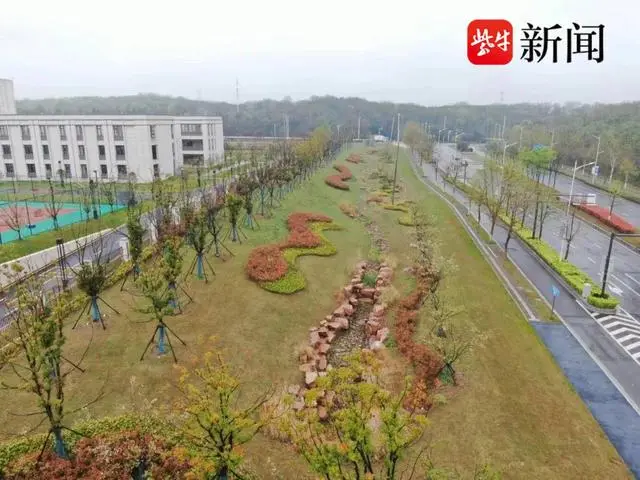 法治園區(qū)配套道路及環(huán)境提升工程位于南京市江北新區(qū)沿山大道以東,浦鎮(zhèn)大街以南。在完善片區(qū)路網(wǎng)的同時(shí),該項(xiàng)目因地制宜布局下凹綠地、透水鋪裝、植草溝、溢流式雨水口、滲透管等海綿設(shè)施,通過(guò)觀賞花草種植、天然石鋪地、植物組團(tuán)點(diǎn)綴等形式打造特色旱溪景觀,實(shí)現(xiàn)生態(tài)功能與景觀效果的統(tǒng)一。