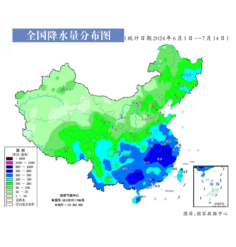 今年上半年我國共出現19輪暴雨天氣過程,長江以南大部降雨偏多。統計數據顯示,長江以南地區6月的累計降雨量普遍達到300至500毫米,其中,廣東海豐降雨最多,累計降雨量高達2332.6毫米,廣西防城港市防城區以14個暴雨日成為暴雨最頻繁的地方。