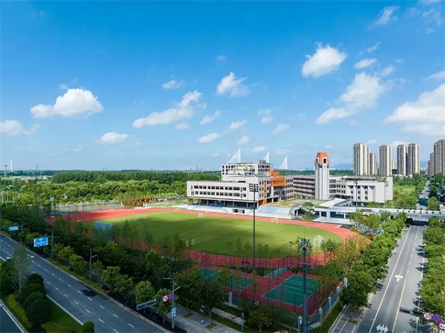 金陵中學新校區(qū)位于中新南京生態(tài)科技島南部,已于2023年開學,學校總占地面積約為3.87萬平方米。江心洲校區(qū)與本部采用一校兩址辦學、一體化管理,構成完整的高中編制和國際部編制,通過集團化辦學孵化引領全島基礎教育不斷發(fā)展壯大。