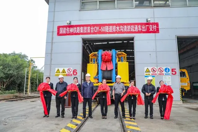 9月11日上午10時,經(jīng)過項(xiàng)目組一年多來夜以繼日的奮戰(zhàn),國內(nèi)首臺QY-50隧道排水溝清淤車正式出廠,即將在包神鐵路投入使用。