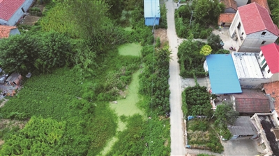 四嶺村8組地勢(shì)相對(duì)平坦,農(nóng)舍坐北朝南,呈一字排列,近年來(lái),由于基礎(chǔ)設(shè)施建設(shè)相對(duì)滯后,生活污水都流到村口處約5畝大小的堰塘內(nèi),導(dǎo)致雜草叢生、臭味難聞,村民對(duì)此處都是避之不及。