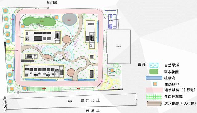 蒙自泵站擁有三個“第一”——上海第一座多功能生態(tài)排水泵站,第一座開放式的花園泵站,是全國第一座排水文化公園。上海市排水公司負責人介紹,蒙自泵站除了雨水泵、截流泵、調(diào)蓄池等排水設施外,還用雨水花園、透水道路等不同海綿構件形成海綿調(diào)蓄,完整地還原水在社會中“使用、排放、收集、處理、回歸”的循環(huán)過程。