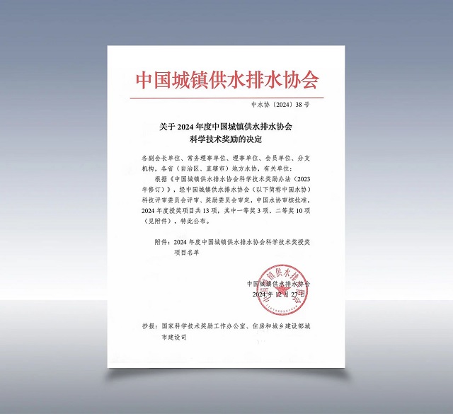 中國城鎮(zhèn)供水排水協(xié)會科學(xué)技術(shù)獎(jiǎng)作為城鎮(zhèn)供水排水行業(yè)最具權(quán)威的獎(jiǎng)項(xiàng),旨在推動(dòng)城鎮(zhèn)供水排水行業(yè)科技創(chuàng)新與技術(shù)進(jìn)步,加速科技成果轉(zhuǎn)化,激勵(lì)在城鎮(zhèn)供水排水行業(yè)科技進(jìn)步中做出突出貢獻(xiàn)的單位,本年度共評出獲獎(jiǎng)項(xiàng)目13項(xiàng),其中一等獎(jiǎng)3項(xiàng)、二等獎(jiǎng)10項(xiàng)。