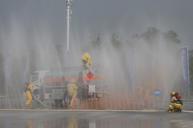 在國家安全生產應急救援隊伍“一專多能”建設交流會上,國家?;仍貞c川維隊和普光隊在展示道路交通事故救援。市應急管理局供圖