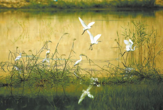 劉立國是一名攝影愛好者,總是將鏡頭對準家鄉的河。以前,泃河多半年斷流,水少的季節,鳥也不愛來,隻能拍攝河邊的花草和建筑。前幾年河裡有了水,泃、洳兩河交匯處常有鳥友蹲守,有從城裡來的,也有從周邊來的,他就曾目睹上百隻白鷺傍晚翔集。