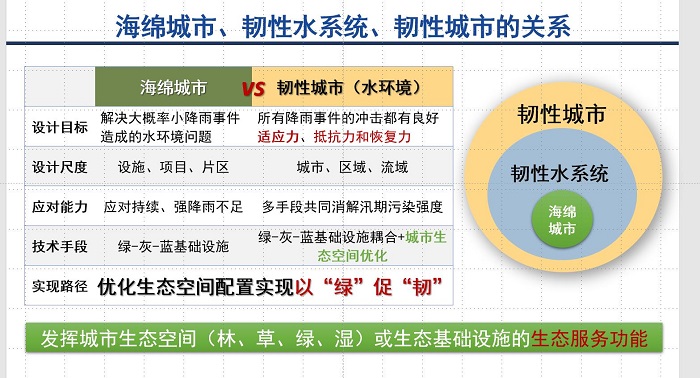 海綿城市是韌性水系統(tǒng)的初期階段 中國環(huán)境報(bào):為更好地實(shí)現(xiàn)城市雨洪管理,我國自2014年起推廣海綿城市。近年來,打造韌性城市成為汛期城市防洪和內(nèi)澇治理的一項(xiàng)解決方案。二者有何聯(lián)系與區(qū)別?