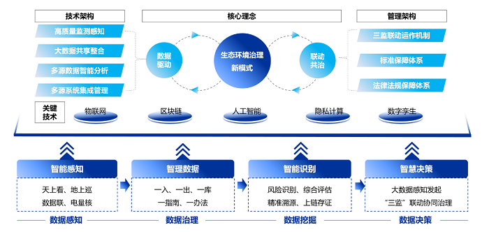 精準治理的實現,離不開全方位的智能監測網絡。“數據驅動、三監聯動”的生態環境新型治理體系構建了“天上看、地上巡、數據聯、電量核”新一代智能監測網絡,成為治污“利器”。