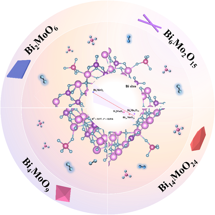 在最新研究中,團隊合成并對比四種典型鉬酸鉍晶相,揭示其在高碘酸鹽活化中的差異,首次明確鉍—氧鍵活性、三價鉍暴露程度及表面電荷分離效率的關鍵作用。其中,二鉍六氧化二鉬憑借獨特的奧里維利烏斯層狀結構與優異電子行為,實現對典型抗生素氧氟沙星的超快速降解,且在多種天然水體、共存離子及連續流條件下保持高穩定性。